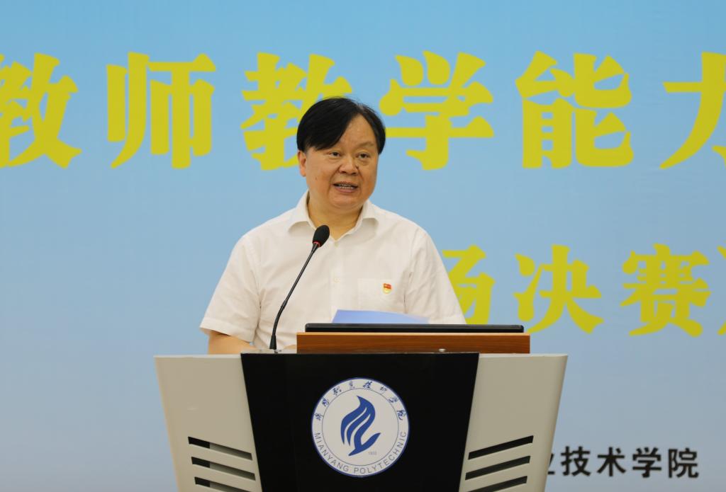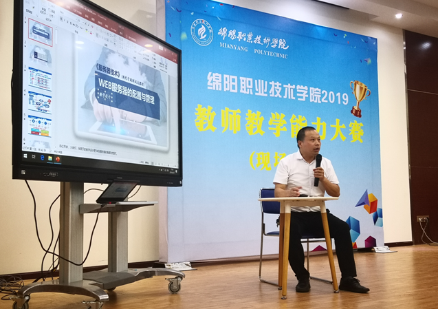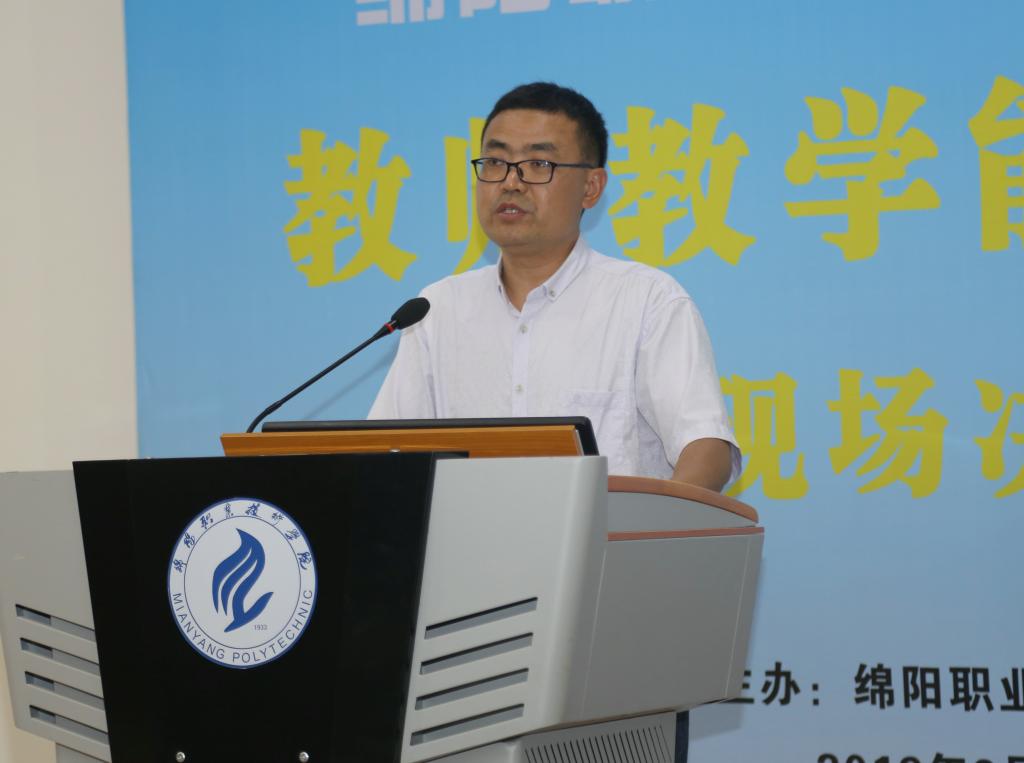 6月26日,学校2019年教师教学能力大赛决赛在智慧教学举行。校长何礼果致辞。比赛特邀教师教学能力大赛国赛一等奖选手、高级网络工程师、成都航空职业技术学院教师牛洁,全国水利职教新星、教师教学能力大赛国赛一等奖选手、四川水利职业技术学院教师朱自强,四川交通职业技术学院教务处副处长陈清担任评委。副校长杨建国、各教学单位比赛负责人及入围复赛的28支团队现场观赛。