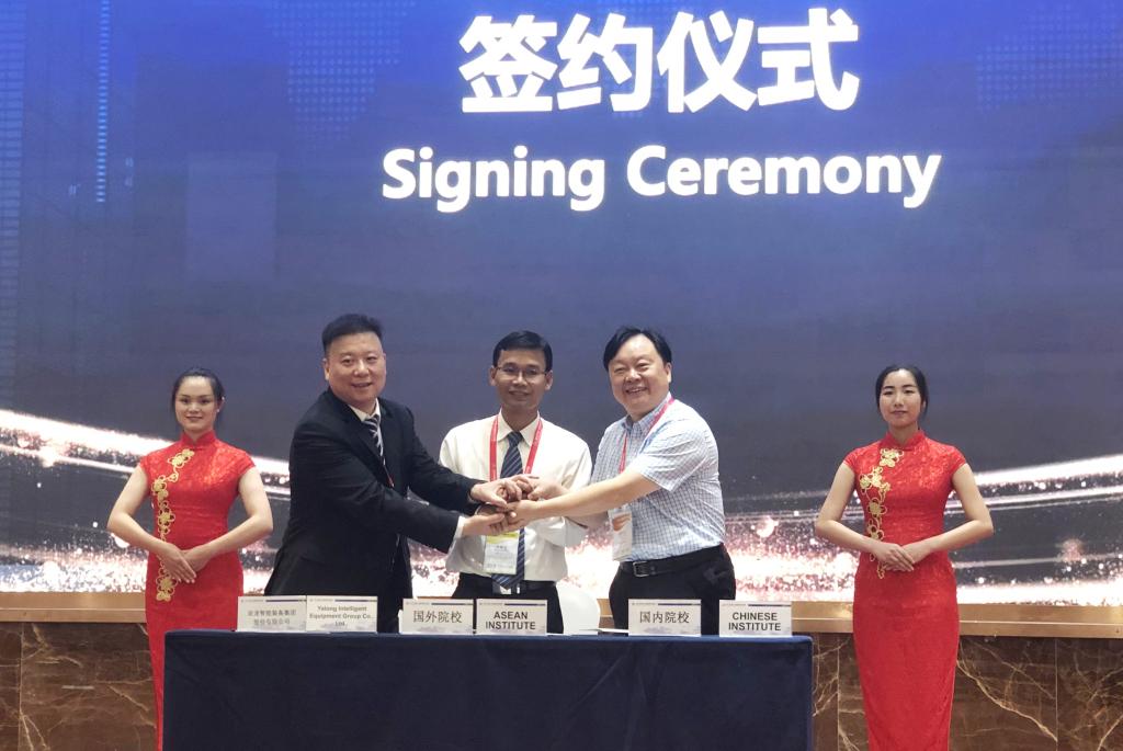 会议期间,何礼果一行参加了“中国-东盟职业教育高校对接洽谈会”,与马来西亚教育部、泰国职业教育中心、柬埔寨吴哥国家理工学院等外方代表就合作需求、合作模式、合作前景等内容进行了详细交谈,一致希望开展全面合作,助力职业教育国际化发展。学校还与柬埔寨吴哥国家理工学院、亚龙智能装备集团股份有限公司共同签订了合作备忘录,将在国际教育、产教融合、技能培训、科技研发、创新创业、实践教学和文化交流方面增进交流,拓展中国职业院校与境外院校、行业企业对接能力,助推国际化产教融合。