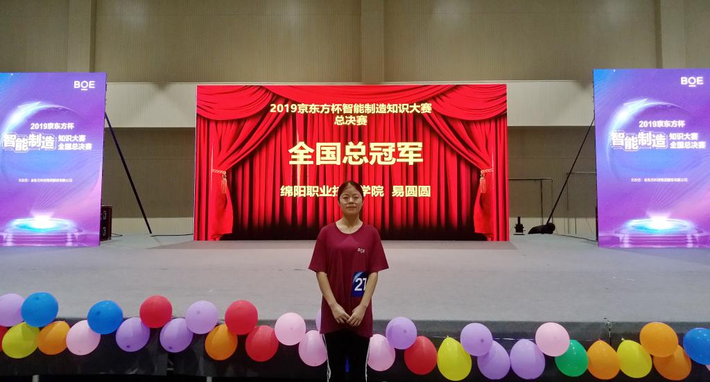 8月19日—21日,“2019年京东方杯智能制造知识大赛总决赛”在安徽省举行。来自全国29所职业院校的30名选手参加比赛。我校管理系易圆圆同学在比赛中沉着冷静,表现突出,最终获得“2019年京东方杯智能制造知识大赛”全国总冠军,我校获得“总冠军学校”荣誉称号。