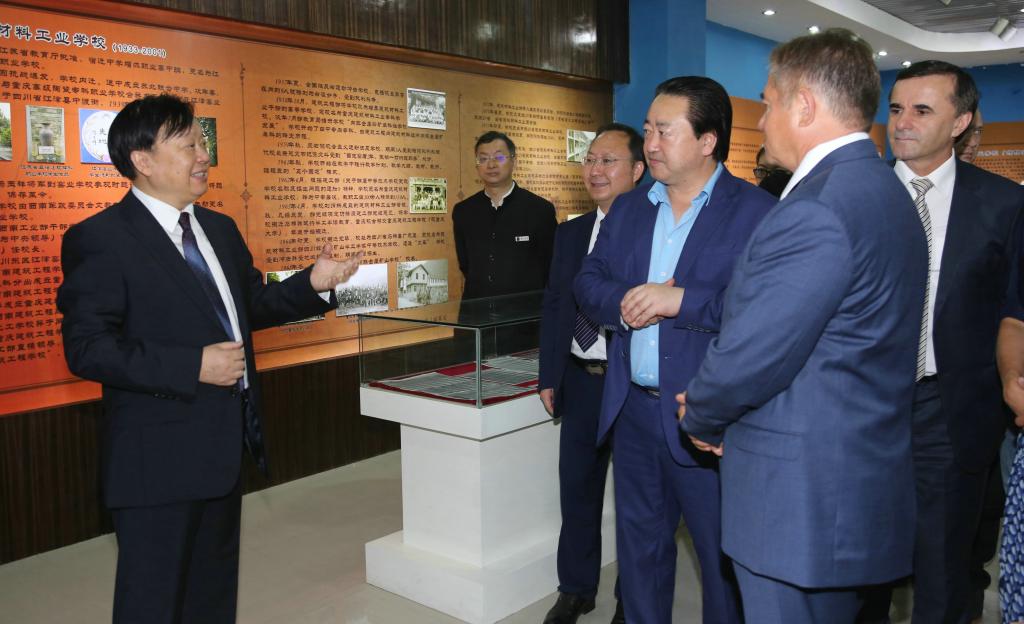 俄罗斯代表团先后参观了校史陈列馆,机电系、材料系、建筑系等校内实训场所。何礼果为客人们详细介绍了学校的建校历史、办学规模、办学特色、人才培养、校企合作等方面的情况。代表团对学校依托和对接中国(绵阳)科技城建设和区域行业产业发展,构建“政校企研四位一体”的产教融合、协同育人机制,实施“模块化”“工学交替”等特色鲜明的校企多样化人才培养模式,大力培养高素质技术技能人才的办学思路予以高度赞赏。