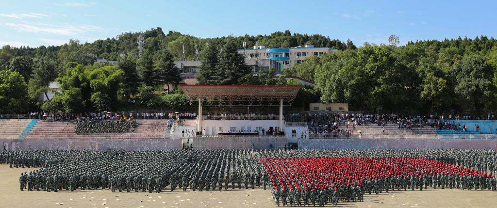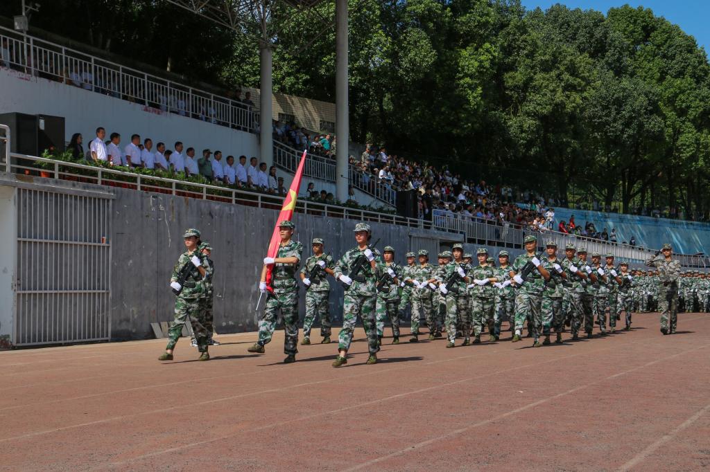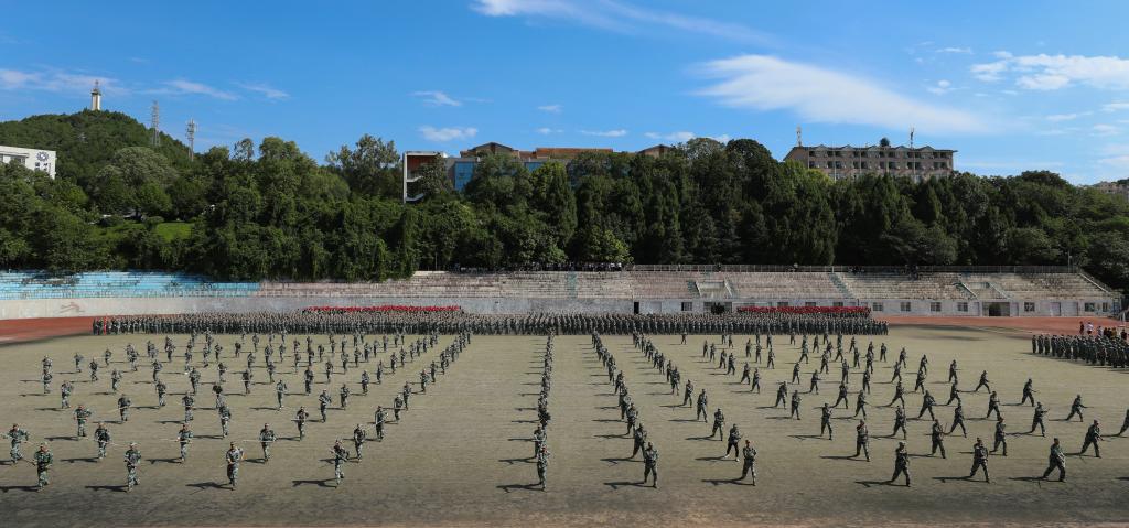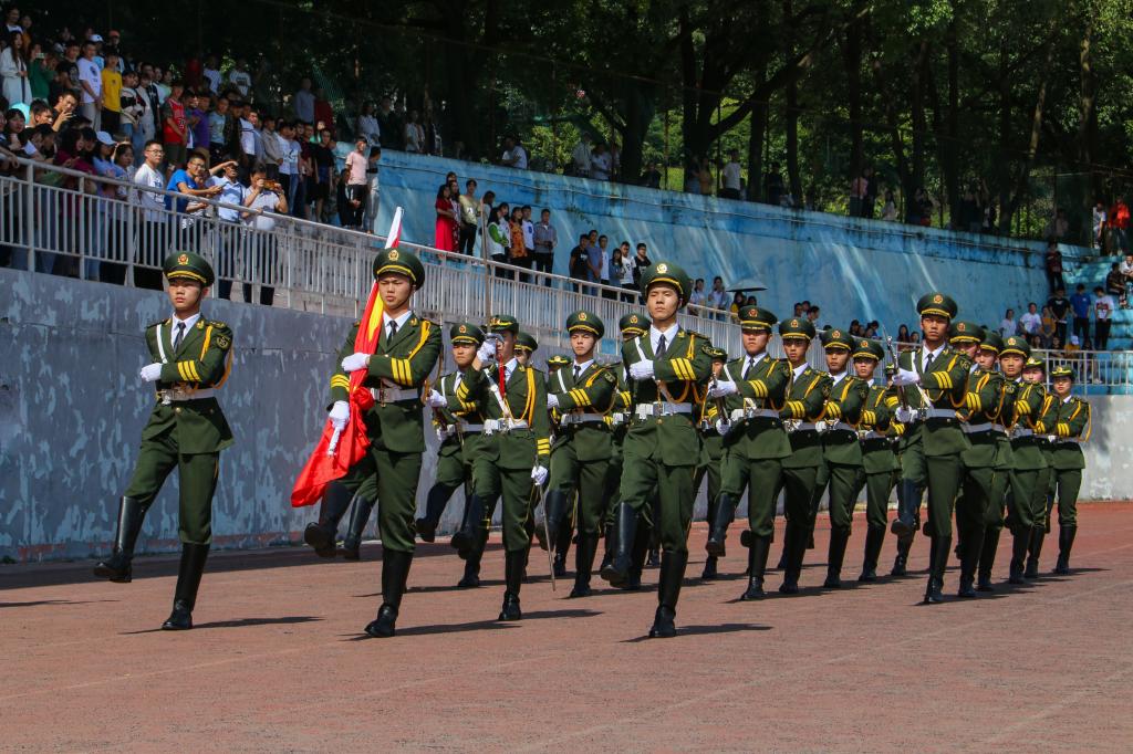 9月20日下午,学校在运动场隆重举行2019级新生开学典礼暨军训汇报表演。学校党委副书记、校长何礼果,绵阳军分区党委常委、战备建设处处长梁博,学校党委副书记王荣海,党委常委、副校长钟志万、左明扬、沈利剑、张明,党委常委、纪委书记汪涌泉,党委常委、副校长杨建国出席。党委(学校)办公室、宣传统战部、保卫处、学生工作部、教务处各系党政负责人在主席台就座。活动由王荣海主持。