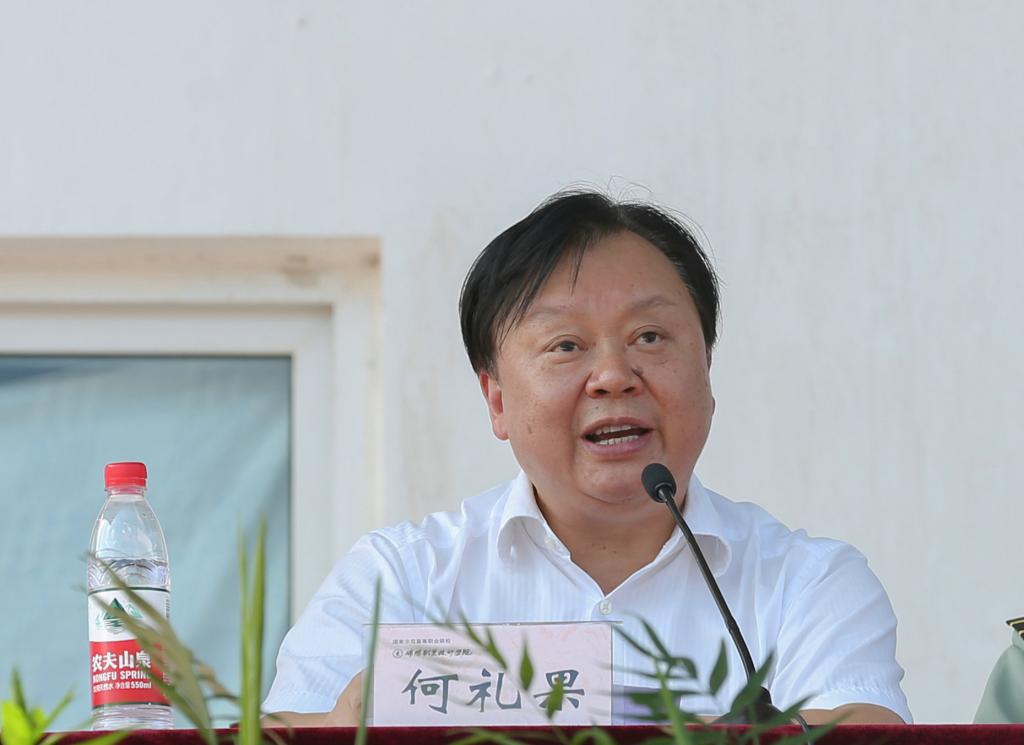 何礼果作开学典礼讲话。他代表学校党政和全校师生向来自全国14省、市、自治区和老挝、塔吉克斯坦、印度尼西亚、柬埔寨等国家的4400余名新同学表示热烈欢迎,介绍了学校辉煌的历史、繁荣的现状和宏伟的蓝图并为同学们送上了“绵职攻略”,希望帮助引导同学们找到打开绵职的“正确方式”:一要立德修身, 涵养人文精神;二要脚踏实地, 做好自我管理;三是要志存高远,担当时代责任。他指出,绵职的大学生活必将成为新同学们挥洒青春、追逐梦想的良好起点。在绵职,有高水平且负责任的老师,有优美的校园环境和良好的生活条件,有综合性交叉融合的学科,还有海外学习、创新创业等多样化的成长路径。希望同学们在大学期间明确地定位未来的人生坐标和努力方向,勇敢地追逐自己的梦想。