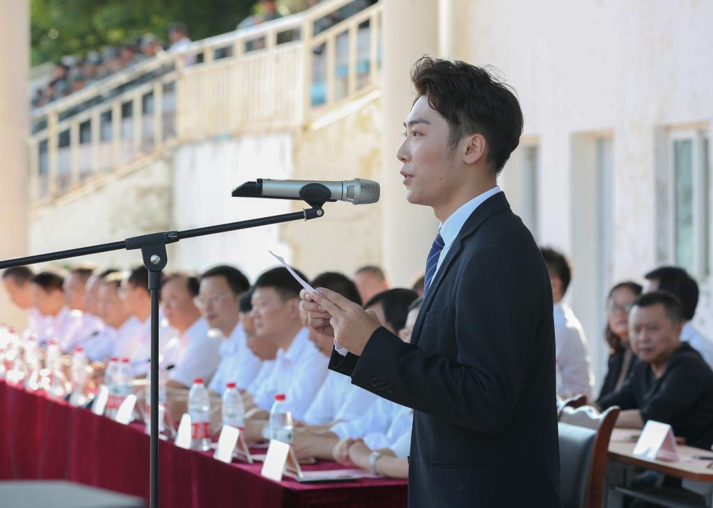 新生代表材料工程系分析192班陈新一、老生代表管理工程系旅游172班张斌、教师代表建筑工程系陶庆东先后作了发言。陈新一表示,我们即将启程,奔赴美好的大学生活,肩负着亲人的厚望与老师的祝福,前往更加广阔的天地,探索人生的百万种可能。让我们用好何校长给我们制定的“绵职攻略”,立德修身,涵养人文精神;脚踏实地,做好自我管理;志存高远,担当时代责任。张斌与学弟学妹们分享了学习心得,提醒他们,在大学,要学会自我调适,培养良好学习习惯;明确人生定位,做好职业规划;既有远大目标,也要脚踏实地;真诚对待师友,乐观面对生活。陶庆东老师表示,大学是人生旅途的一个重要驿站,更是开创美好未来的一个新起点。他希望同学们树立远大理想,培养正确的世界观、人生观和价值观;能尽快适应新的环境,严于律己,学会做人、做事、学习、生活和合作;能珍惜三年的青春时光,努力拼搏,把自己锻造成一名政治坚定、品德高尚、知识广博、作风过硬、身体健康的高素质人才。(文:刘晨晨;图:陈丽媛,学通社张维思、陶俊、曾海祥)