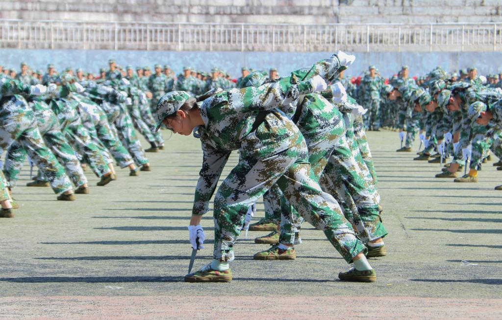 庄严肃穆的升旗仪式后,首先举行了军训汇报表演。在扣人心弦的进行曲中,一个个军训方队的同学,满怀青春的热情,踏着矫健的步伐,喊着嘹亮的口号,器宇轩昂地走过主席台前,让在场领导和观众充分感受了新一代绵职人的青春活力。随后,国家手语操、男子棍术、男子战术、女子匕首操、男子拳术、教官风采展示等丰富多彩的汇报表演项目将现场气氛推向高潮,同学们精神饱满、队列整齐、动作娴熟、口号洪亮,赢得了全场观众的阵阵喝彩和掌声,也为本次军训交上了一份满意的答卷。
