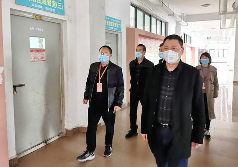 杨建国一行实地察看了学校门岗制度、校园防疫知识宣传展板、防疫物资储备、临时观察室的准备情况。深入校园、教学楼和食堂等地,了解疫情防控落实情况和学生三餐就餐制度、三检制度,教师防疫值班制度、教学巡查制度等。