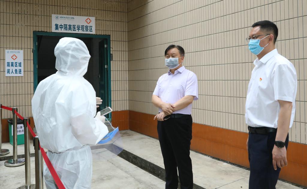 5月20日,我校举行学生返校复课疫情防控应急模拟演练。校长何礼果,校领导王荣海、沈利剑、张明、杨建国,党委常委陈波、周蒨,相关职能部门、二级教学院(系)负责人、辅导员及各场景工作人员参加。