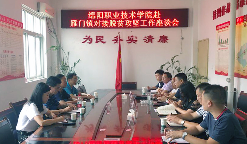 为进一步加强学校对口帮扶精准扶贫工作,根据学校党委2020年扶贫工作安排,7月13日,副院长张明一行四人前往江油市雁门镇就2020年对口帮扶精准扶贫工作进行对接和调研。党委办公室、学校办公室,保卫处,材料工程系等相关部门人员随同调研。