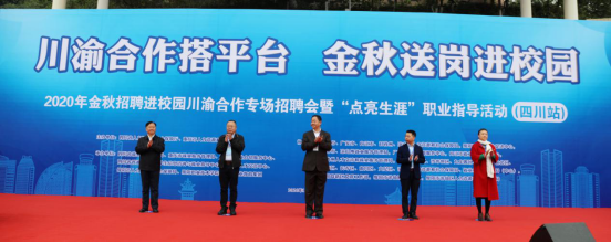 11月1日,2020年金秋招聘进校园川渝合作专场招聘会暨“点亮生涯”职业指导活动在我院举行。活动吸引了来自四川、重庆以及广东、浙江等地区的共计300余家企业参加,为大学生们提供了12486个就业岗位。四川省就业服务管理局副局长高峻、重庆市就业服务管理局副局长李云勇、四川省职业介绍服务中心主任张平、绵阳市人力资源和社会保障局党组成员、绵阳市就业创业促进中心主任王岚;学院党委副书记、院长何礼果,党委常委、副院长左明扬出席开幕式。左明扬主持仪式。