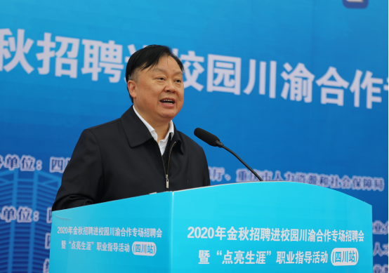 何礼果在专场招聘会开幕式上致辞。他讲到,此次活动是贯彻“成渝地区双城经济圈”国家战略,落实川渝两地党政关于加快推动成渝地区双城经济圈建设的重要部署,有助于搭建川渝联动的人力资源供需对接平台,促进两地人力资源流动,助力川渝地区高校毕业生充分就业、高质量就业。学院长期以来认真贯彻党中央、国务院关于高校毕业生就业工作的决策部署,坚持把毕业生就业作为工作的重中之重。今年受国内外风险挑战增多和新冠肺炎疫情的影响,就业难度加大,学院将依托“成渝地区双城经济圈建设”战略机遇,多措并举拓展就业市场,广泛开展校企交流与合作,搭建好就业服务平台,诚邀省内外及本区域内的名优企业单位参与学校举办的各类“线上+线下”招聘活动,确保实现我校毕业生就业率稳定和就业质量继续提升。相信我院毕业生将以其所具有的创新能力和高素质品德修养、扎实的专业知识和独特的专业技能,为其将来所服务的用人单位带来新的活力,做出新的贡献。