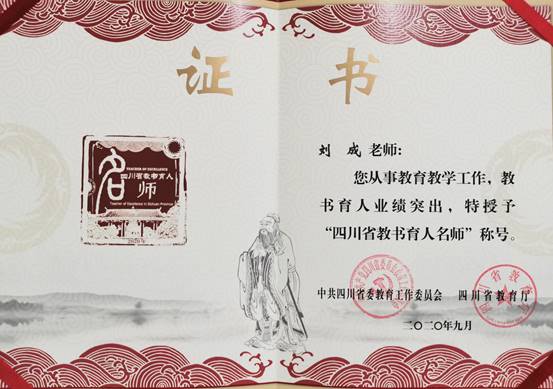 近日,四川省公布2020年教书育人名师、中小学名校长、中小学名班主任、高等学校辅导员,绵阳职业技术学院刘成老师当选教书育人名师(双师型)。