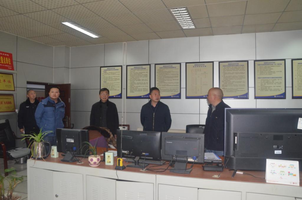 张明(右二)在110视频监控中心慰问查看保卫处值班人员和值班情况