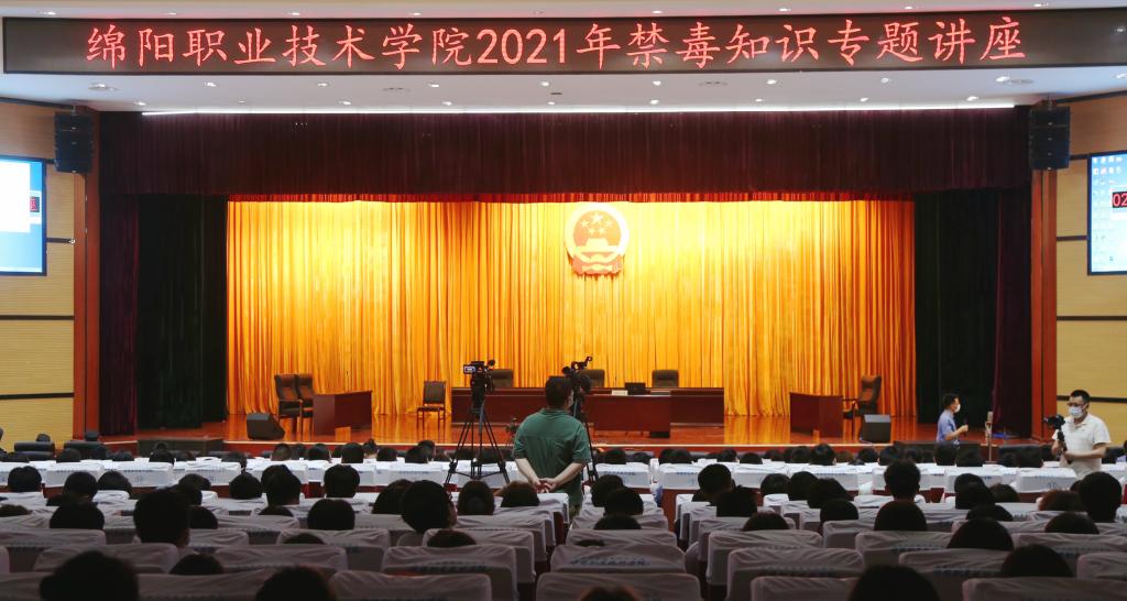 在“6•26”国际禁毒日即将到来之际,为丰富我院禁毒宣传教育活动形式,提升禁毒宣传教育效果,绵阳市游仙区人民法院巡回法庭第六审判庭“《旁听庭审•以案说法》禁毒警示教育”活动,于6月18日在学院第一教学楼A区学术报告厅举行。此次活动由党委宣传部、学生工作部、武装保卫处联合举办,600余名师生员工代表在现场旁听庭审。
