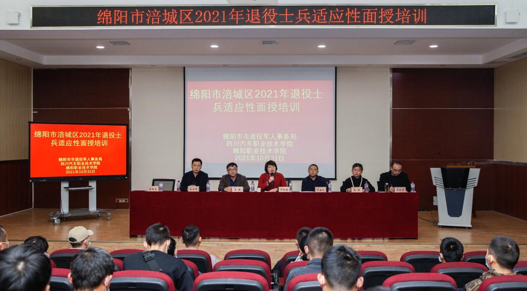 10月31日下午,学校举行了2021年绵阳市涪城区退役士兵职业技能培训开班仪式。党委常委、副校长代红英,涪城区退役军人事务局党组书记、局长何海成出席会议。涪城区相关职能部门负责人及全体参培学员、班主任和部分专业教师代表参加了开班仪式。