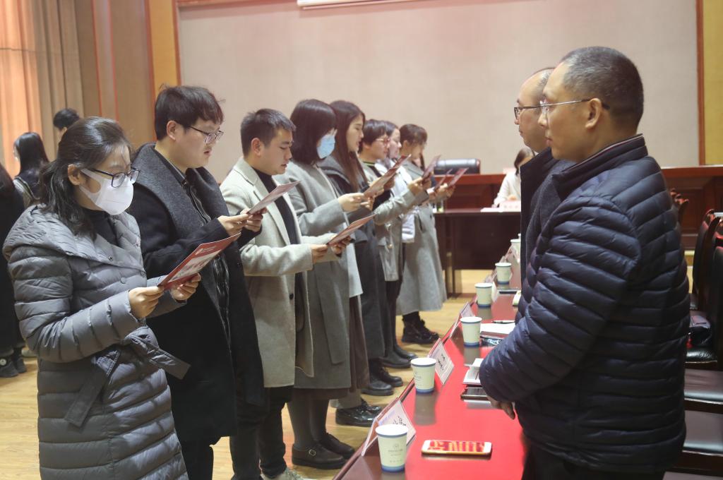 仪式上,新教师向指导教师宣读拜师帖,行拜师礼。“青蓝工程”教师代表签订拜师协议。周蒨宣读了“青蓝工程”师徒结对考核通知。2020年青蓝结对代表肖昆和申小婷,2021年青蓝结对代表任冬燕和高峰先后进行了发言。各位教师代表在发言中畅谈了自己的从教经验和感悟,表达了坚持立德树人,为教育事业终身奋斗,争做四有好老师的决心。