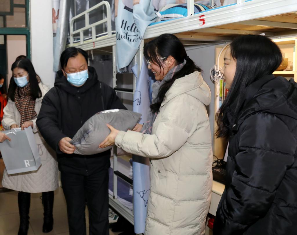 12月31日,党委副书记、校长何礼果,党委常委、副校长代红英,党委常委、副校长张明及相关职能部门负责人一行走访学生宿舍,了解同学们生活情况并进行慰问。