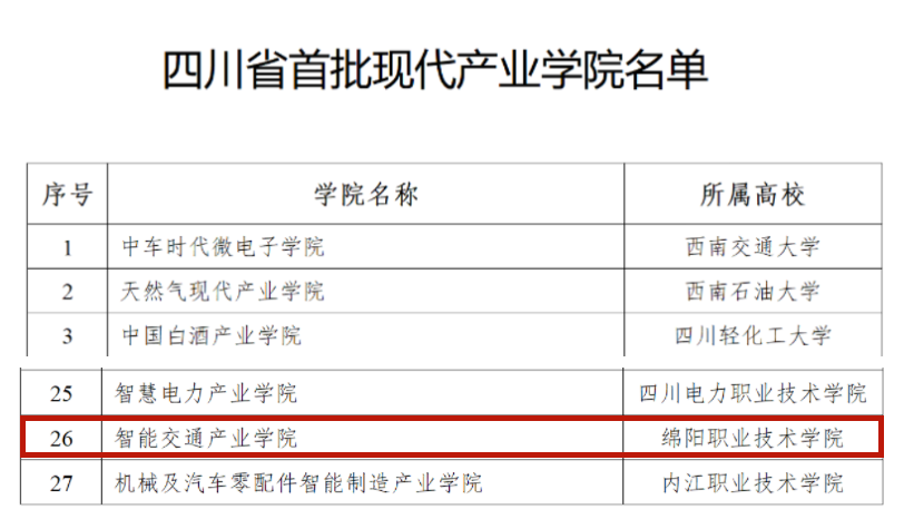 根据《教育部办公厅 工业和信息化部办公厅关于印发<现代产业学院建设指南(试行)>的通知》等文件要求,结合贯彻落实《四川省人民政府关于深化产教融合的实施意见》,近日,省教育厅、省经济和信息化厅公布了首批省级现代产业学院名单。我校智能交通产业学院顺利入选。这是我校高职教育发展过程中的一件大事。