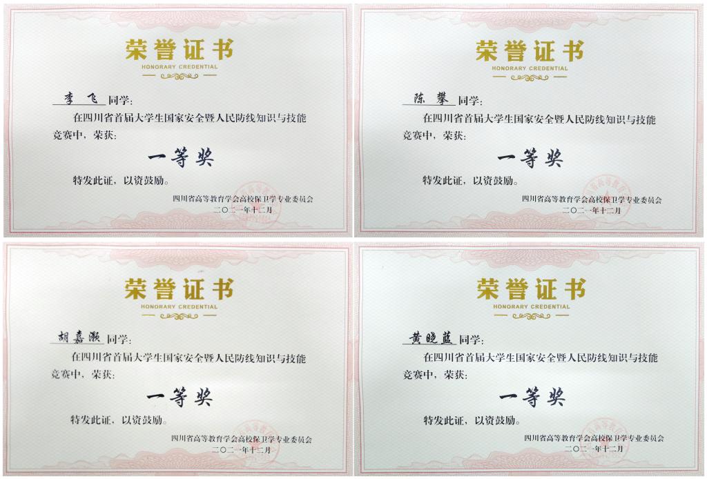 为践行总体国家安全观,进一步推动我省大学生安全教育,大力普及安全知识,提高学生安全素质,维护校园安全稳定,四川省高等教育学会高校保卫学专业委员会在去年6月至11月开展了“四川省首届大学生国家安全暨人民防线知识与技能竞赛”。我校师生在竞赛中喜获佳绩。