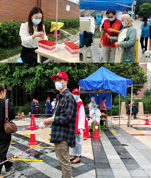 财经商贸学院党总支苏自强、李德久等积极参加所属社区的疫情防控工作,协助医护人员进行核酸检测,维护社区秩序。“志愿者活动是微小的,因为它涉及的范围有限;但志愿者活动也是伟大的,因为它在有限的范围内传递爱心、传递正能量,让群众感受到党的温暖和关怀!”