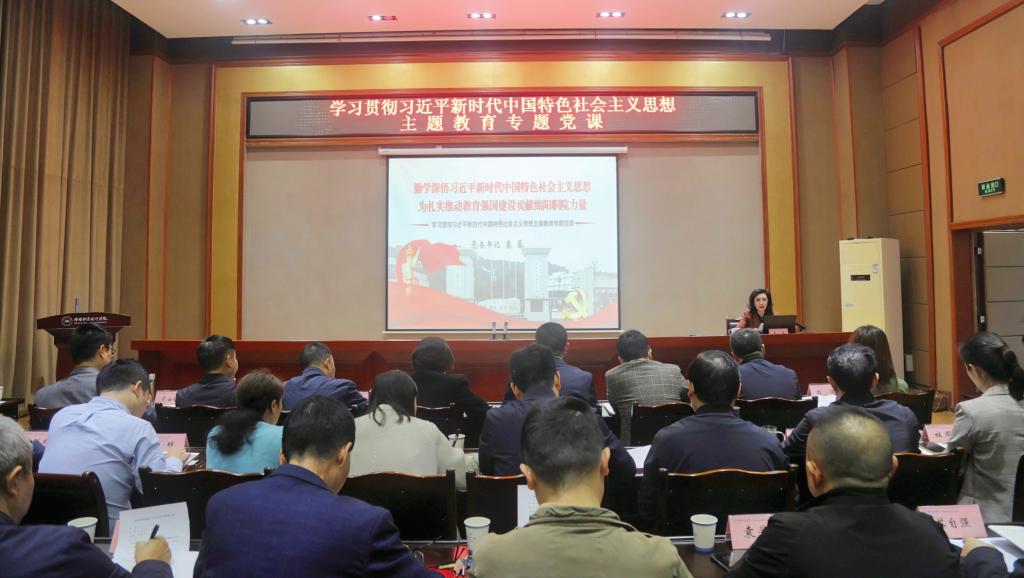 袁蓉指出,教育是国之大计、党之大计。党的二十大报告明确提出到2035年建成教育强国,对“办好人民满意的教育”作出战略部署。5月29日,习近平总书记主持二十届中央政治局第五次集体学习并发表重要讲话,深刻阐释建设什么样的教育强国、怎样建设教育强国这一重大课题,对扎实推动教育强国建设提出明确要求。讲话贯通历史、现实和未来,揭示规律、方向和大势,具有很强的政治性、思想性、战略性,是指引我国教育强国建设的纲领性文献。全校上下要深入学习领会,扎扎实实开展好主题教育,确保在以学铸魂、以学增智、以学正风、以学促干上取得实效。