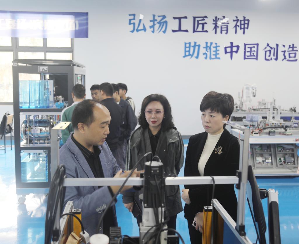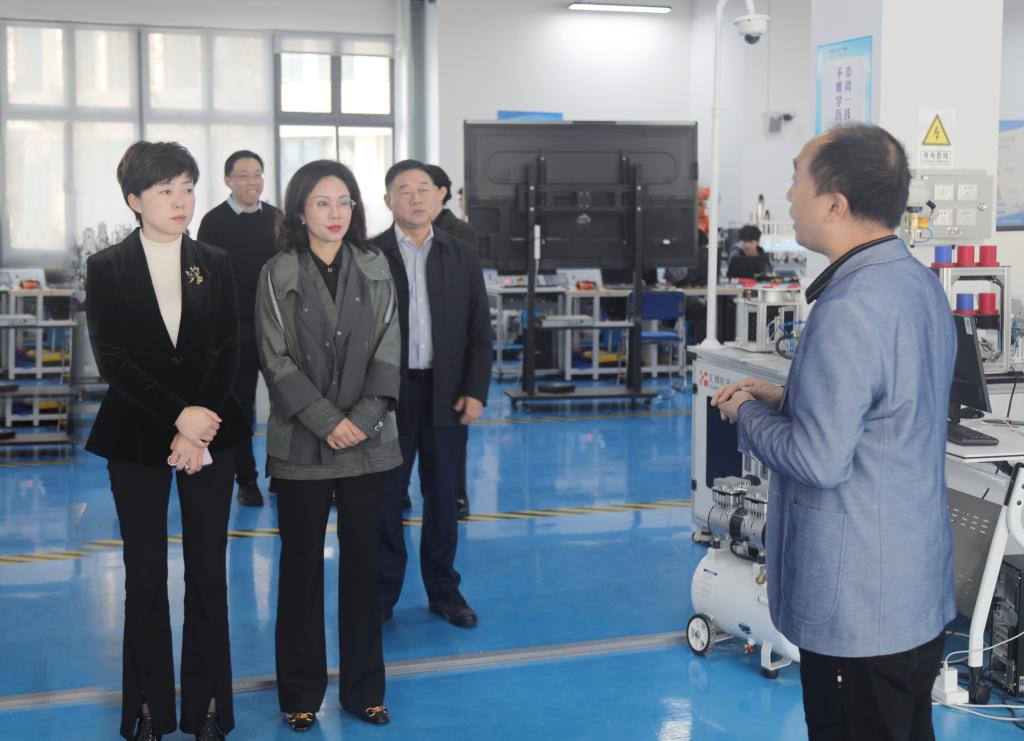 在袁蓉等陪同下,董正红一行参观了我校智能制造学院、财经商贸学院、电子与信息学院和旅游与管理学院实验实训场所。