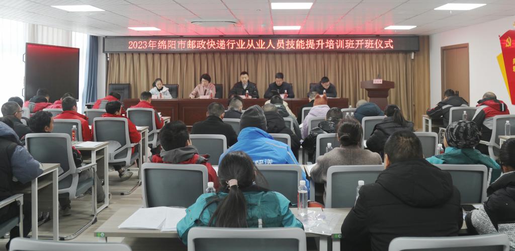 12月21日下午,绵阳市首期邮政快递行业从业人员技能提升培训开班仪式在学校第二教学楼举行。绵阳市邮政管理局副局长唐旭全,学校党委常委、副院长代红英出席会议,首期50余名快递从业人员参加开班仪式。