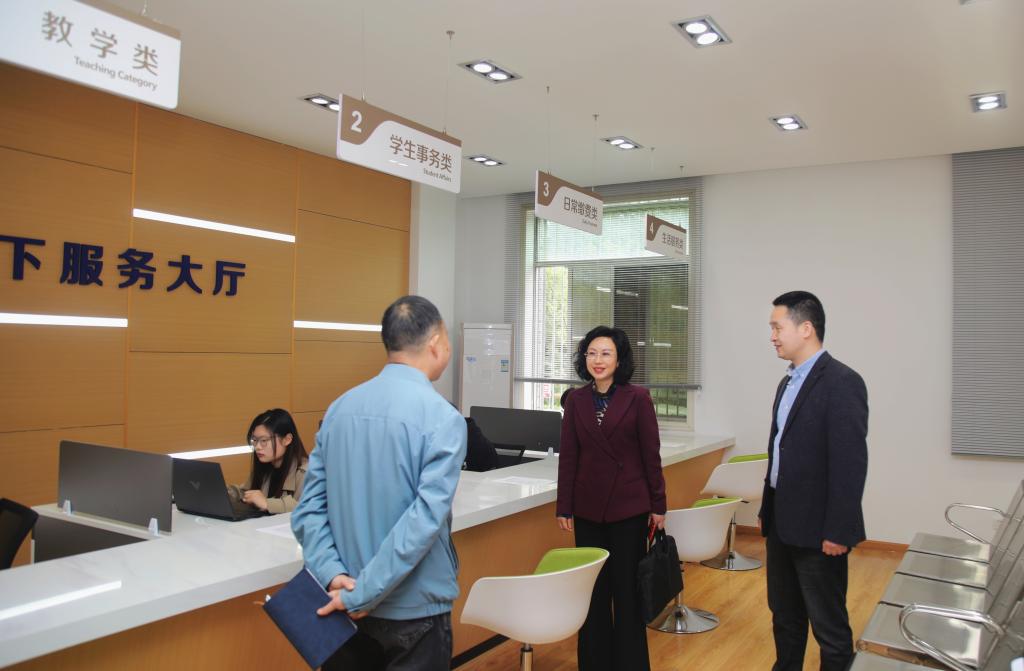 会前,袁蓉一行参观了“一站式”学生社区阵地、“一站式”学生社区综合服务大厅和大学生心理健康教育与咨询中心等。(文:杜健 图:杨智雯 编辑:刘晨晨)