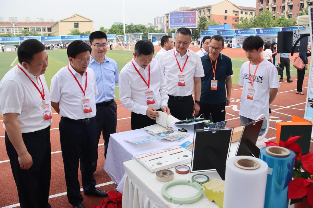领导、嘉宾在我校布展区参观