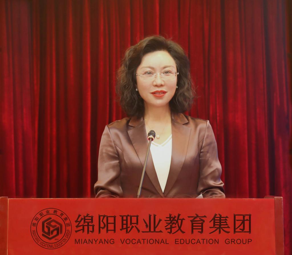 在致辞中,袁蓉代表学校热烈欢迎各参会领导、嘉宾和专家,向一直以来关心支持学校发展的各级领导、各成员单位和社会各界表示感谢。她指出,绵阳职教集团自2012年成立以来,在绵阳市教育和体育局的正确领导下,在各成员单位的大力支持与协作配合下,在人才培养、产业学院建设和服务行业企业等方面积极开展探索和实践,取得了显著的成绩,被列为国家示范性职业教育集团。绵职院作为绵阳职教集团的牵头单位,始终坚持服务中国科技城建设和区域行业发展,以现代职教理念大力推行产教融合、协同育人,集中培育了材料与建造、电子与信息、智能制造等一批特色、重点和优势专业,学校办学水平不断提升,科技创新和技术服务能力显著增强。接下来,学校将切实发挥好牵头单位的示范带动作用,与集团成员单位一起,进一步深化集团体制机制建设,优化职教资源配置,加强校企合作,深化产学融合,推动集团建设提升质量、办出特色、形成品牌,努力为区域经济和社会发展培养更多更优秀、用得上、留得住的高素质技能人才。