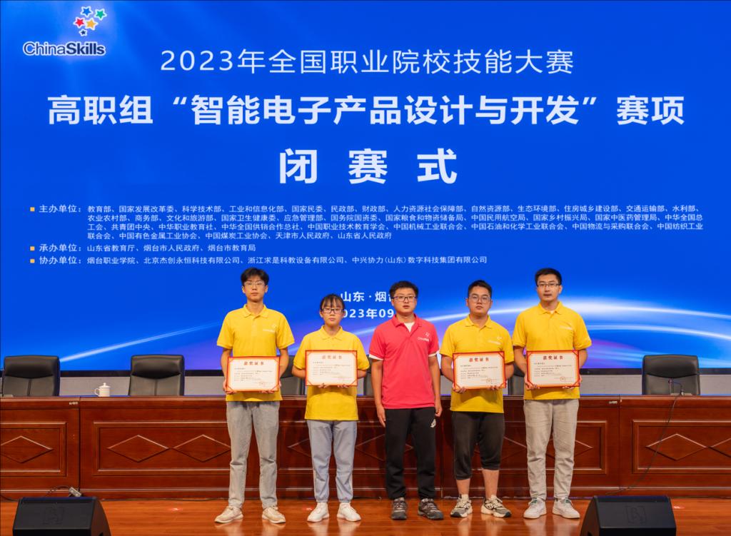 杨柳与工作室学生参加全国职业院校技能大赛高职组智能电子产品设计与开发(师生同赛)赛项获国家二等奖