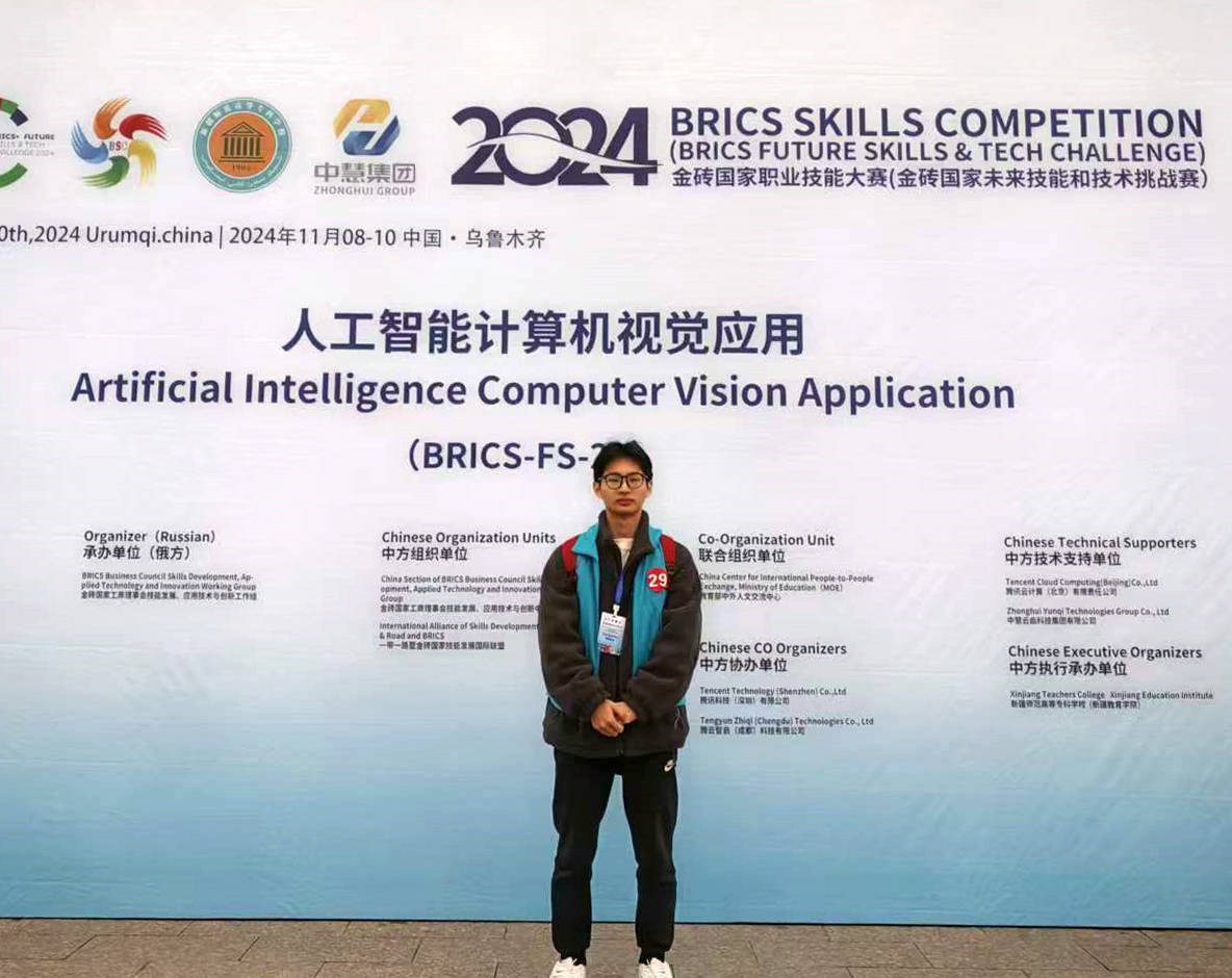 11月8日—10日,由俄罗斯技能发展署、俄罗斯战略倡议署、金砖国家工商理事会等多个国际机构联合主办的2024金砖国家职业技能大赛人工智能计算机视觉应用赛项国际总决赛在新疆举办。由我校电子与信息学院教师杨飞指导的软件222班学生李晨铭荣获该赛项三等奖。