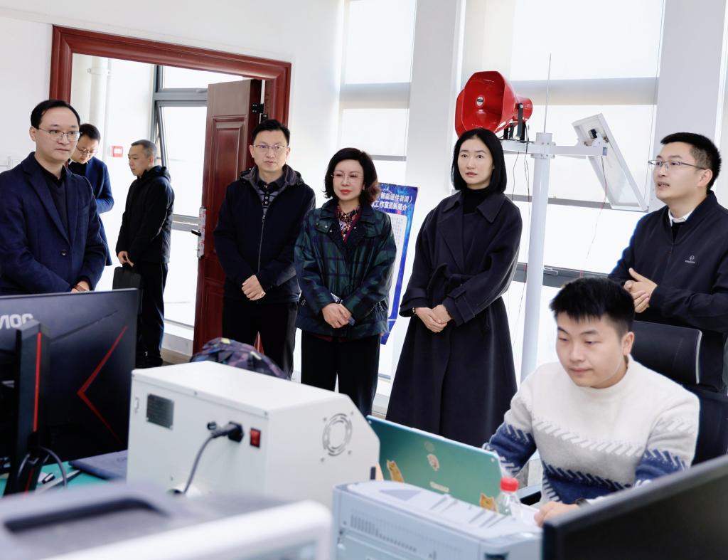 袁蓉热烈欢迎潘凌一行来校并陪同参观我校电子与信息学院博士工作室和市级“技能大师工作室”,听取工作室负责人汇报该工作室在服务科技城建设和区域重点产业发展方面和创新带徒传技、技术创新、技术推广、技能攻关等人才培养模式方面取得的成效。