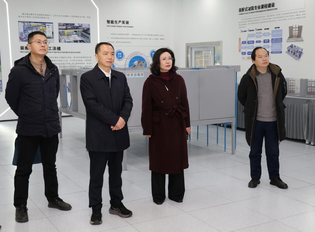 会前,在袁蓉、杨建国等陪同下,马建光一行参观了我校材料与建造学院虚拟仿真实训基地、智能制造学院实训基地和电子信息工程技术专业群实训基地。