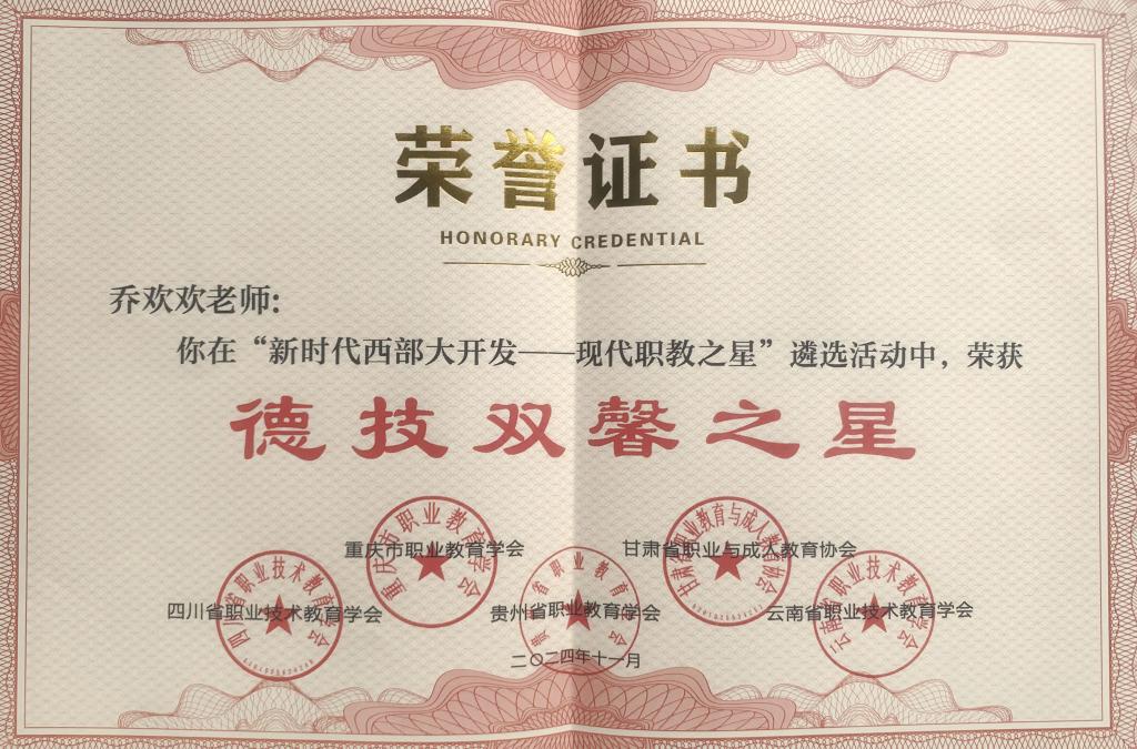 团队主持人乔欢欢获“德技双馨之星”教师称号