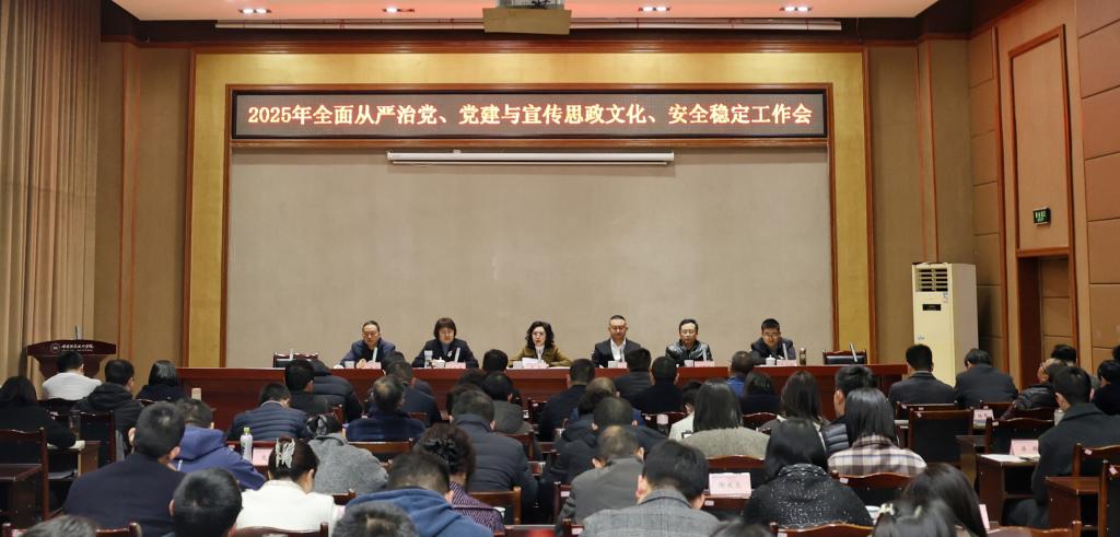 3月14日下午,学校召开2025年全面从严治党、党建与宣传思政文化、安全稳定工作会,贯彻落实上级相关会议决策部署,回顾总结过去一年学校全面从严治党、党建与宣传思政工作、安全稳定工作,安排今年重点任务。党委书记袁蓉出席会议并讲话。她强调,在新一年全校上下要坚决有力落实全面从严治党各项工作要求,以高质量党建推进学校事业高质量发展,为绵阳加快建成省域经济副中心作出新的更大贡献。党委副书记、院长王荣海主持会议。
