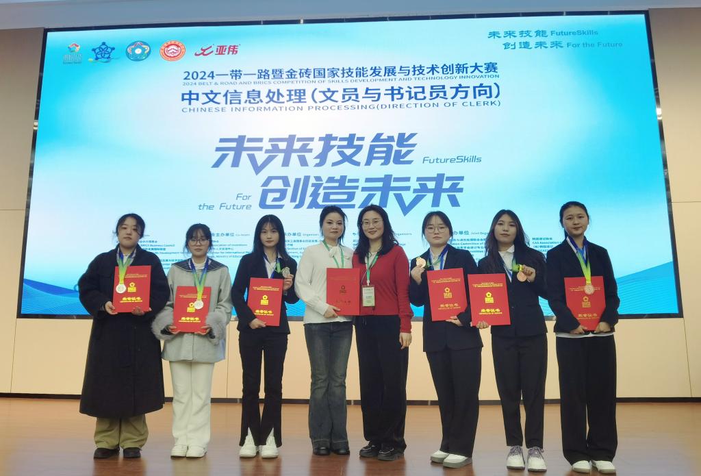 3月28日,2024—2025年“一带一路”暨金砖国家技能发展与技术创新大赛中文信息处理(文员与书记员方向)赛项决赛在武汉警官职业学院落下帷幕。我校旅游与管理学院行政管理与现代文秘专业代表队从全国53所高校106支队伍及韩国参赛队中脱颖而出,斩获团队二等奖、三等奖,学校荣获优秀组织奖,指导教师何丹青、陈玥君获评“优秀指导教师”称号。