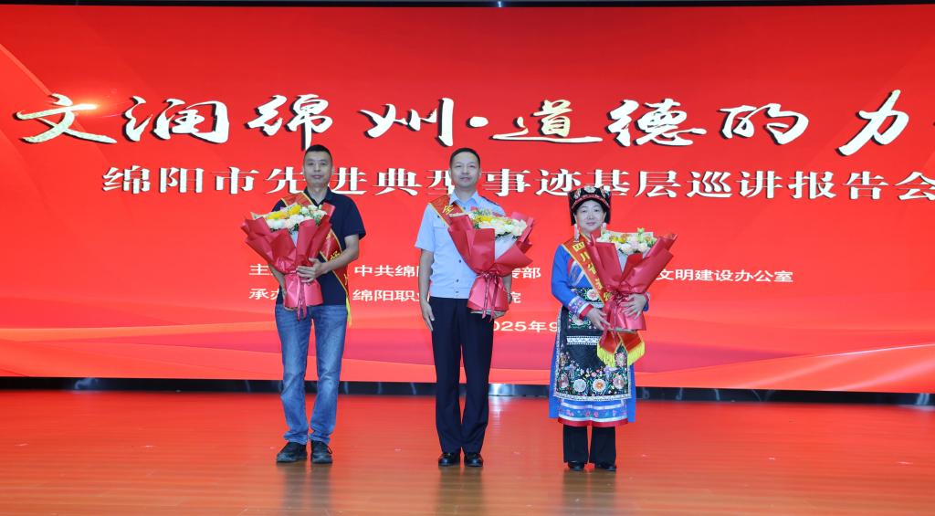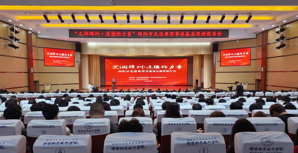 9月19日上午,由中共绵阳市委宣传部、绵阳市精神文明建设办公室主办,我校承办的“文润绵州·道德的力量”绵阳市先进典型事迹巡讲活动首场报告会在学术报告厅举办。中共绵阳市委宣传部机关党委书记赵云,我校党委书记袁蓉,党委副书记代红英,党委常委、副院长张明出席活动。各县(市、区)、园区、科学城办事处文明办负责同志,我校师生代表六百余人到场聆听。