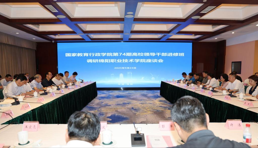 9月23日下午,国家教育行政学院第74期高校领导干部进修班四川调研团来校调研。党委书记袁蓉,党委副书记、院长王荣海等校领导陪同调研团参观了我校绵阳米粉产业学院展厅和智能制造学院、材料工程学院、电气工程学院实验实训场所,并召开座谈会议。国家教育行政学院教育行政教研部主任胡锐军主持会议。