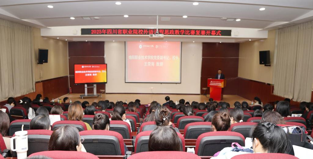 10月12日上午,由四川省职业技术教育学会主办、我校承办、高等教育出版社等协办的2025年四川省职业院校外语课程思政教学比赛复赛在智慧教室开幕。四川省职业技术教育学会副会长张大凯,高等教育出版社外语出版事业市场部副主任穆峥,高等教育出版社四川省教学服务中心常务副主任肖红格,我校党委副书记、院长王荣海出席开幕式。党委常委、副院长杨建国主持开幕式。
