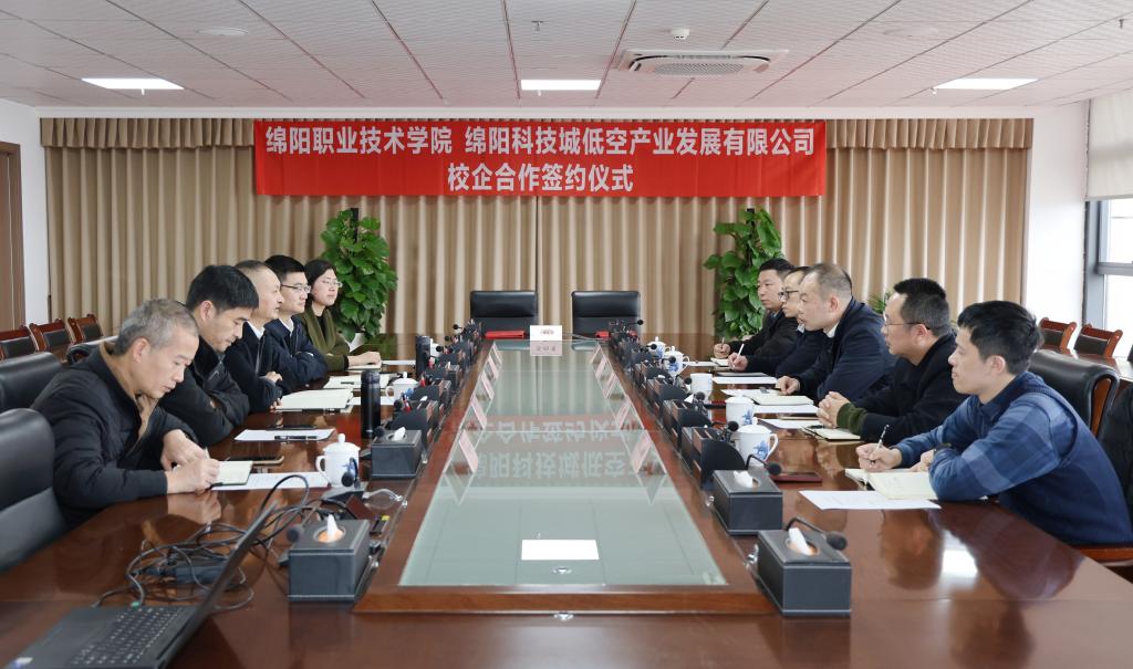 王荣海在致辞中指出,低空经济作为新兴战略性产业,正成为驱动区域经济增长的新引擎。学校始终立足区域产业发展需求,在人才培养、科研创新、社会服务等方面积累了扎实基础。此次与绵阳科技城低空产业发展有限公司的深度合作,是学校主动对接低空产业生态构建、精准服务地方发展大局的关键举措。未来,学校将充分发挥教育资源与智力支撑优势,与企业在人才联合培养、科研攻关、实训基地建设等领域开展精准对接,着力实现“教育链、人才链、产业链、创新链”深度融合,为低空经济产业量身输送更多专业化、复合型技术技能人才,助力产业高质量发展。