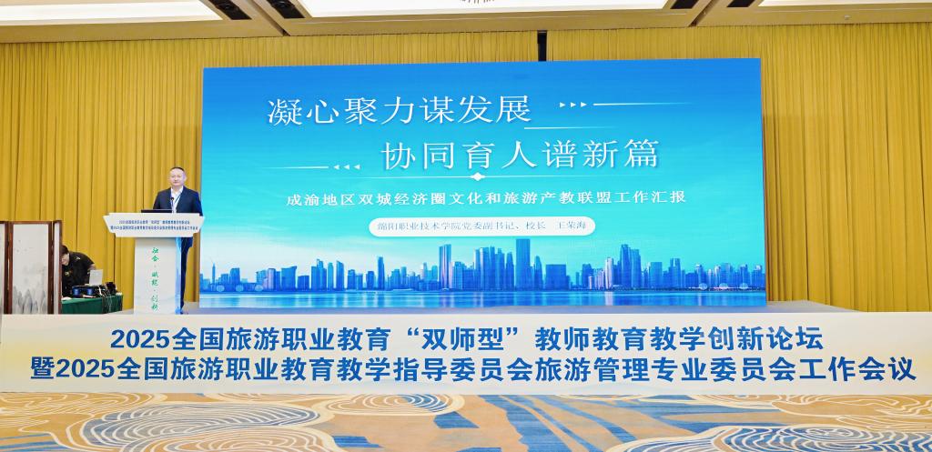 12月18日,成渝地区双城经济圈文化和旅游产教联盟行业产教融合共同体2025年工作会议在四川工程职业技术大学召开。我校党委副书记、院长王荣海主持会议,并于19日在全国旅游职业教育“双师型”教师教育教学创新论坛暨2025全国旅游职业教育教指委旅游管理专委会工作会议上作主旨报告。党委常委、副院长苟安经代表联盟作年度工作汇报。