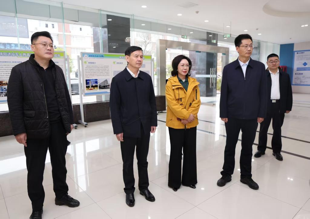 调研组一行认真观看学校退役军人培训宣传视频,阅读宣传展板,听取相关工作汇报,并实地参观了我校材料工程学院、智能制造学院、电子信息学院实验实训场所。