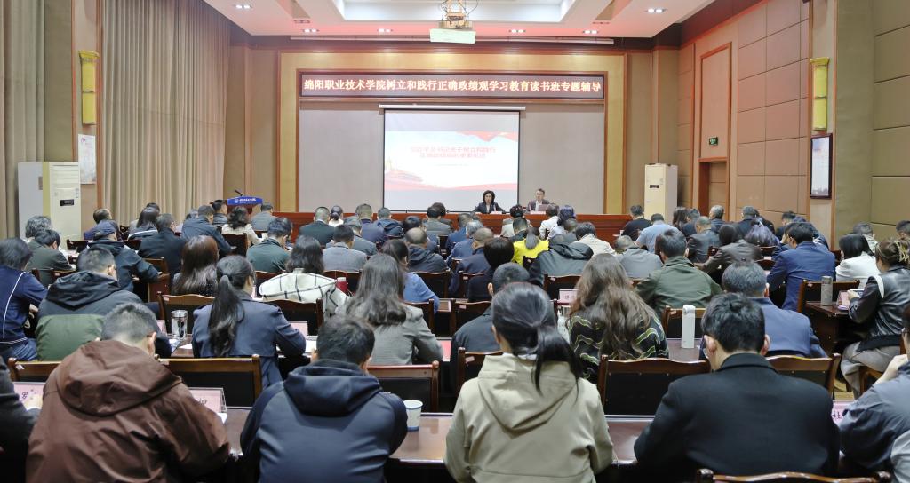 本次读书班为期3天,采取专题辅导、个人自学、研讨交流、中心组学习相结合的形式,深入学习习近平总书记关于树立和践行正确政绩观的重要论述等内容。读书班特邀中共绵阳市委党校副校长、副教授蒋之亮作专题辅导;校党委理论学习中心组成员坚持以上率下、示范领学,围绕“树立和践行正确政绩观”带头开展学习研讨;参加读书班同志结合思想实际、岗位职责深入交流,谈认识、找差距、明方向,形成浓厚学习氛围。