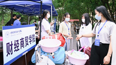 在紧张的迎新工作中,部分新生带的行李过重过多,党员代表带头冲锋,帮新生把沉重的行李一趟又一趟地提上5、6楼。教师党员更是顶着烈日,细心、耐心地为新同学办理入学手续,反复讲解、强调入学注意事项。尽管准备充分,但报到现场仍出现很多突发情况,部分新生的迎新系统出现问题,导致缴费不成功,选不了寝室,现场的党员代表耐心地解释并快速找出解决方法,保证了迎新工作井然有序地进行。