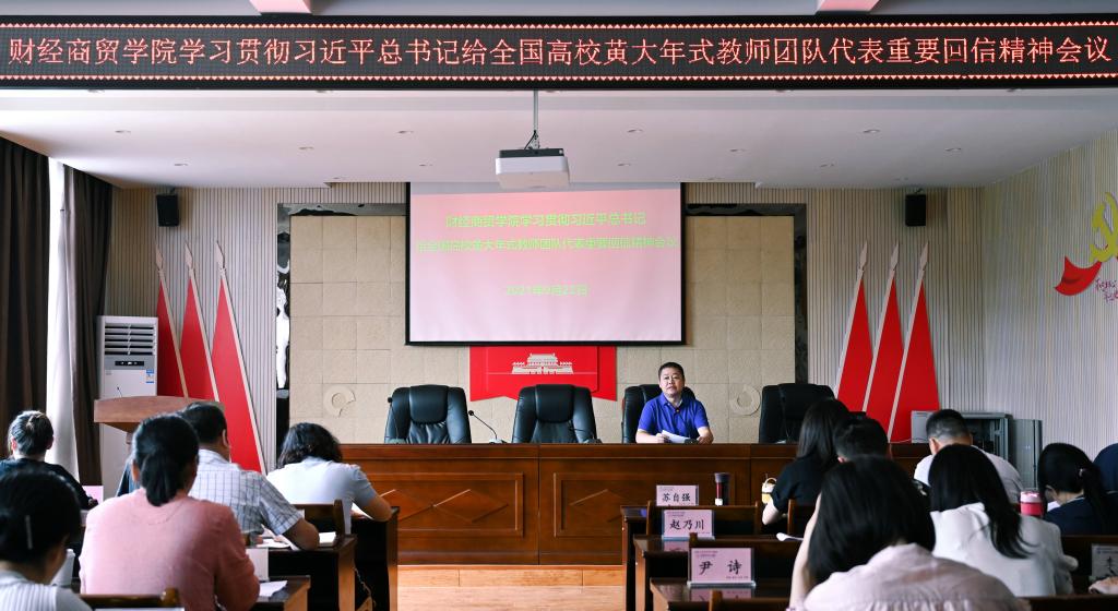 9月22日,财经商贸学院在崇实楼三楼会议室组织学习习近平总书记给全国高校黄大年式教师团队代表的回信。党总支书记苏自强主持学习会,全体教职工参加会议。