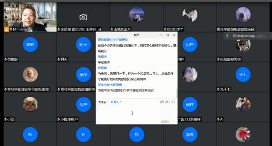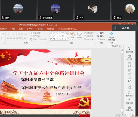 为把党的十九届六中全会精神及时传达给广大学生,11月14日下午,马克思主义学院以腾讯会议加直播的方式,组织广大学生召开学习党的十九届六中全会精神研讨会。会议由青年马克思主义学习部负责人邱顺蓉主持。