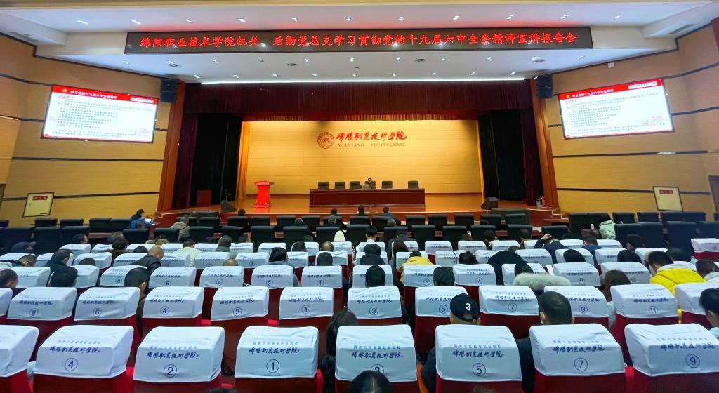 12月8日,学校机关、后勤党总支开展学习党的十九届六中全会精神宣讲报告会。特邀绵阳市委党史学习教育教学师资库入库专家、马克思主义学院院长曹武军围绕“深入学习贯彻党的十九届六中全会精神”带领与会人员进行专题学习。机关一党总支书记周雨田主持报告会。