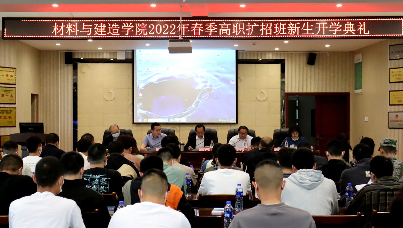 3月19日上午,材料与建造学院举行2022年春季高职扩招班新生开学典礼。学院党总支书记伍志强,副院长贾陆军,党总支副书记张玺,副院长乔欢欢,副院长单荣华出席。