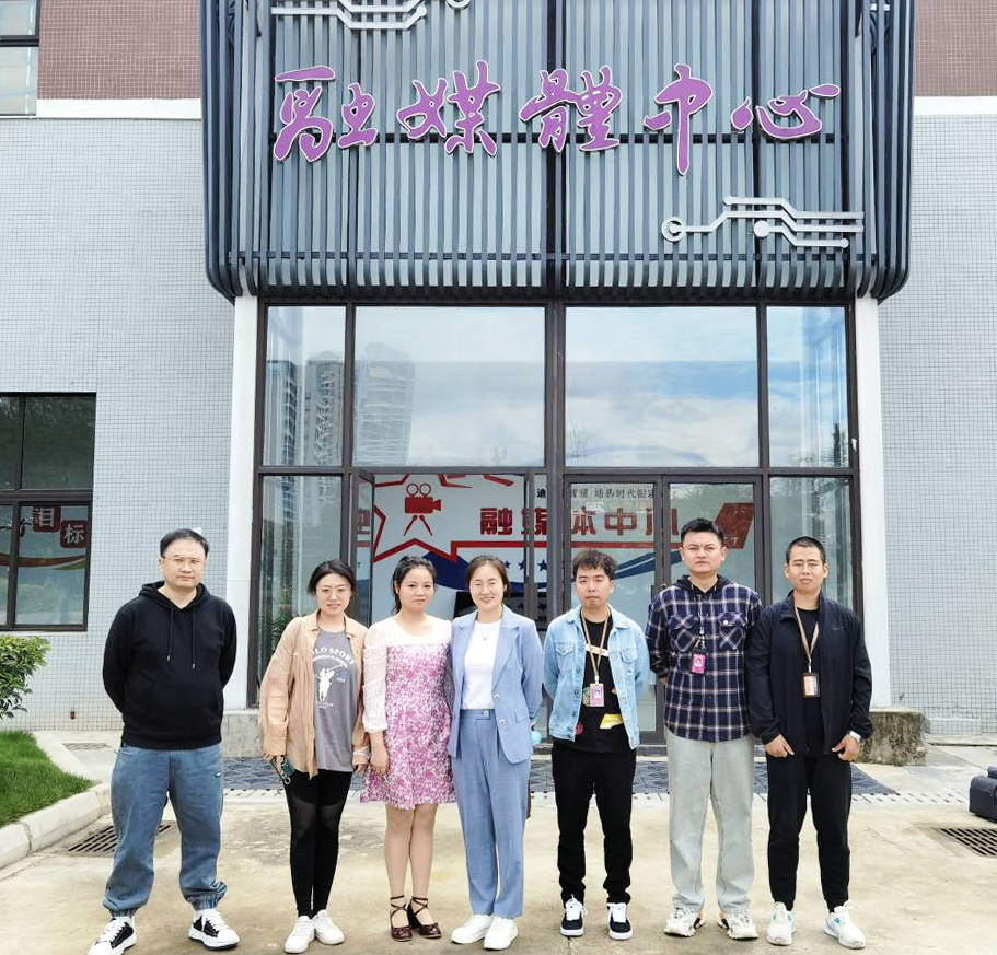 学院教师代表团先后参观了四川文化艺术学院数字传媒专业的融媒体实训中心、直播实训室、产教融合中心和大学生创新创业孵化基地。座谈会上,双方就新媒体运营人才培养的实验实训室建设、人才培养、课程设置、创业就业、校企合作等工作进行了深入交流,还对该校数字传媒专业产教融合项目的开发和生产进行了咨询与了解。