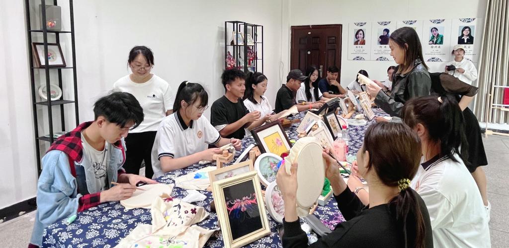 为宣传中国优秀传统文化、讲好中国故事、传播中国声音,带领学校国际学生感受中国传统文化的魅力,5月19日,全体在校国际学生参加2023年成渝地区双城经济圈职教活动周“羌绣体验”主题活动。活动在艺术设计学院杨华娟羌绣大师工作室举行。