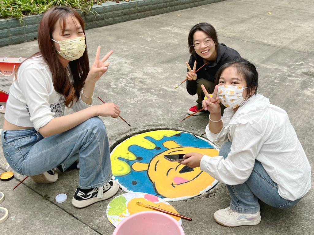 艺术设计学院心理辅导站为了预防、疏解学生的心理压力和负面情绪,结合本学院专业学科特色,开展了“非言语绘画叙事疗愈活动”。活动分为三部分:个人自画像、团队涂鸦以及美化校园井盖活动。同学们通过蜡笔、马克笔以及丙烯颜料的方式引导学生倾听内心声音,接纳多彩的自己。